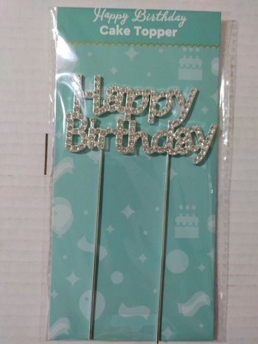 1 Pcs Silver Happy Birthday Pearl Rhinestone Cake Topper Adults Kids Party Event