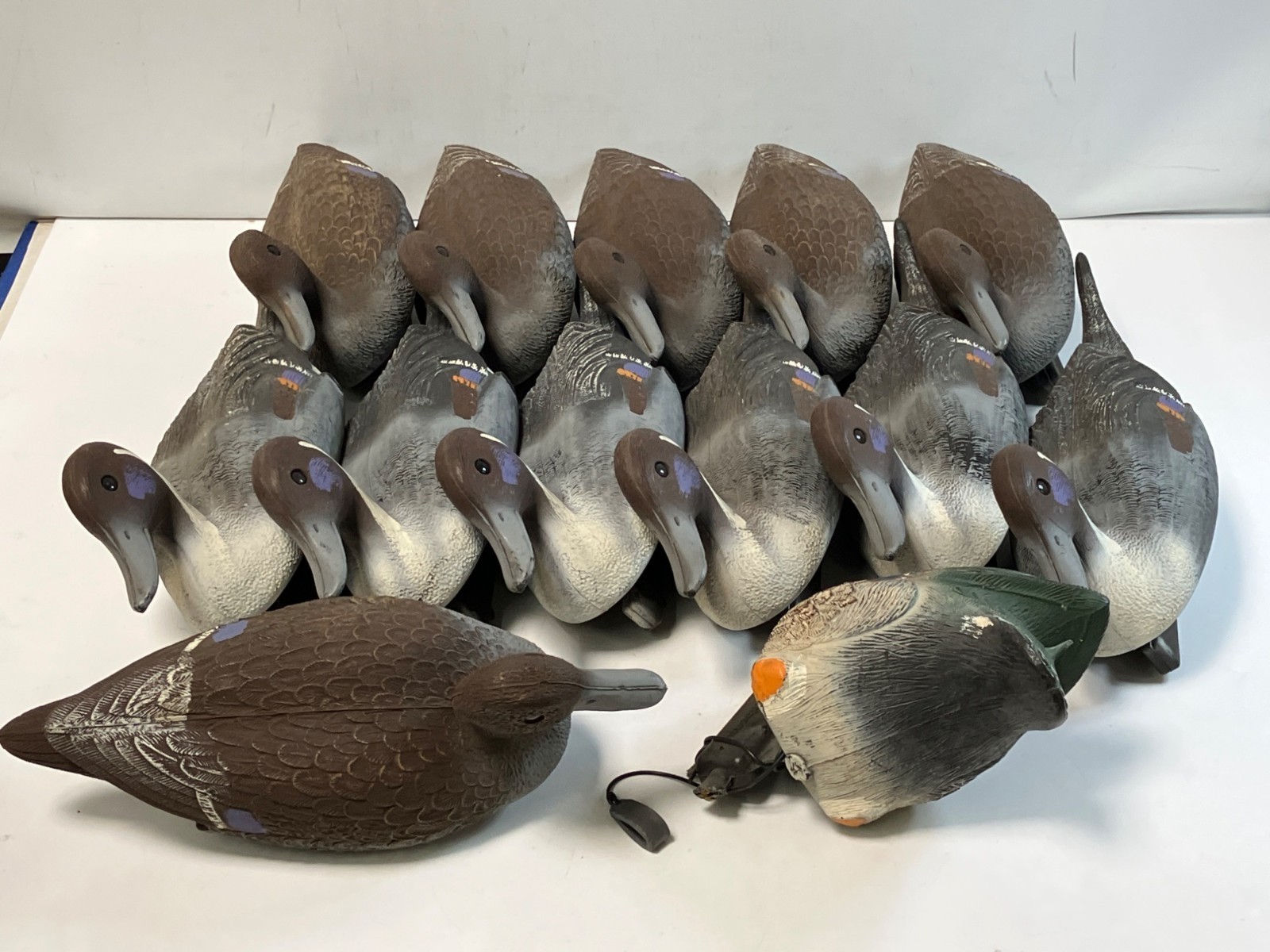 13 Flambeau Duck Decoys Pin Tail, Mallard, Feeder w Mesh Bag Vintage