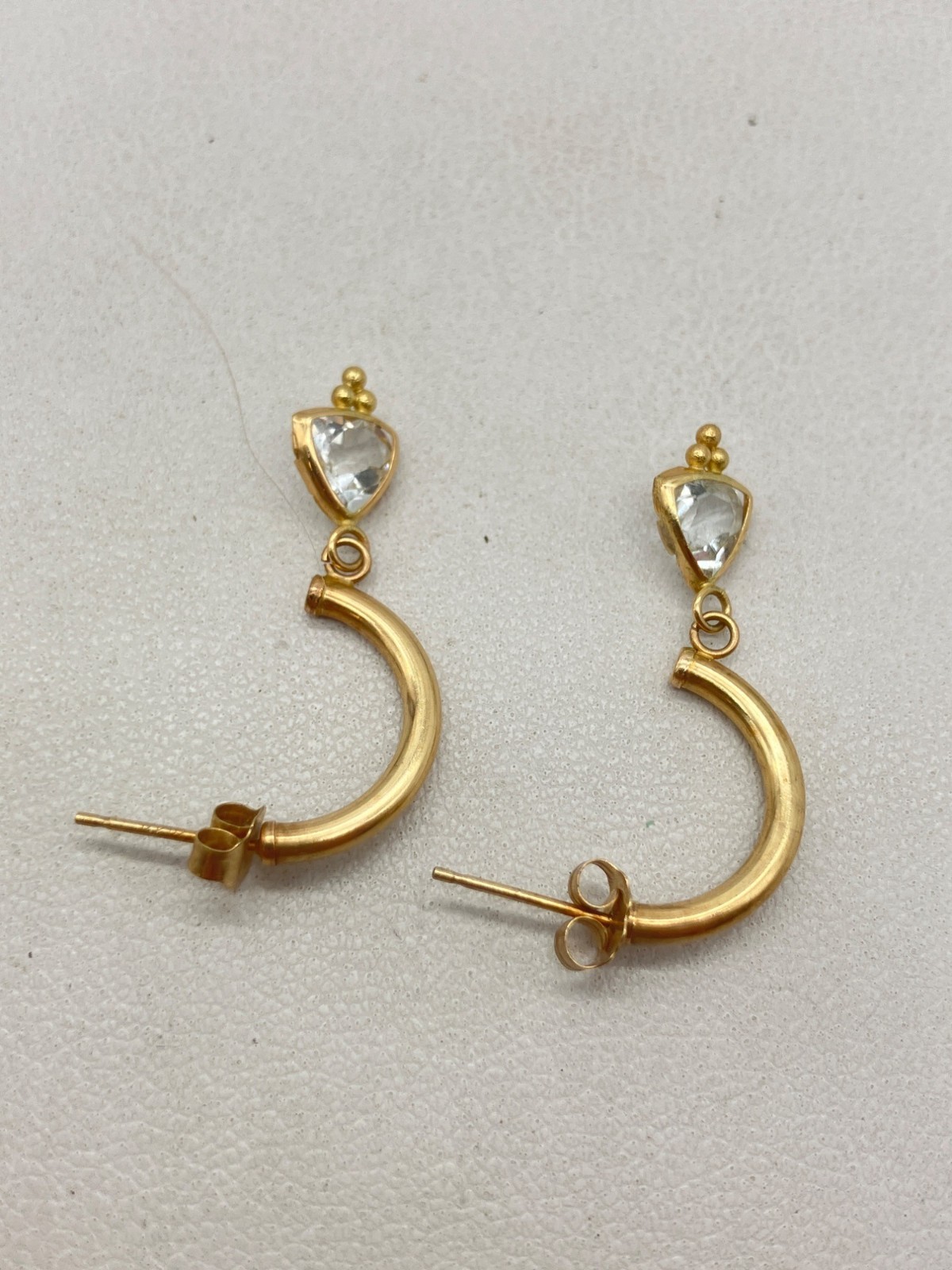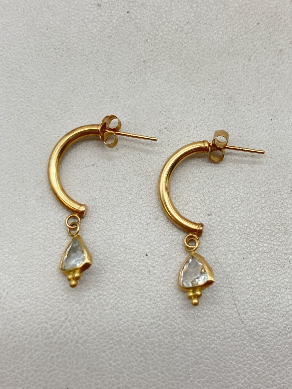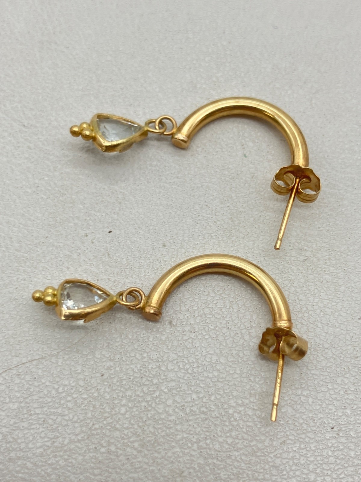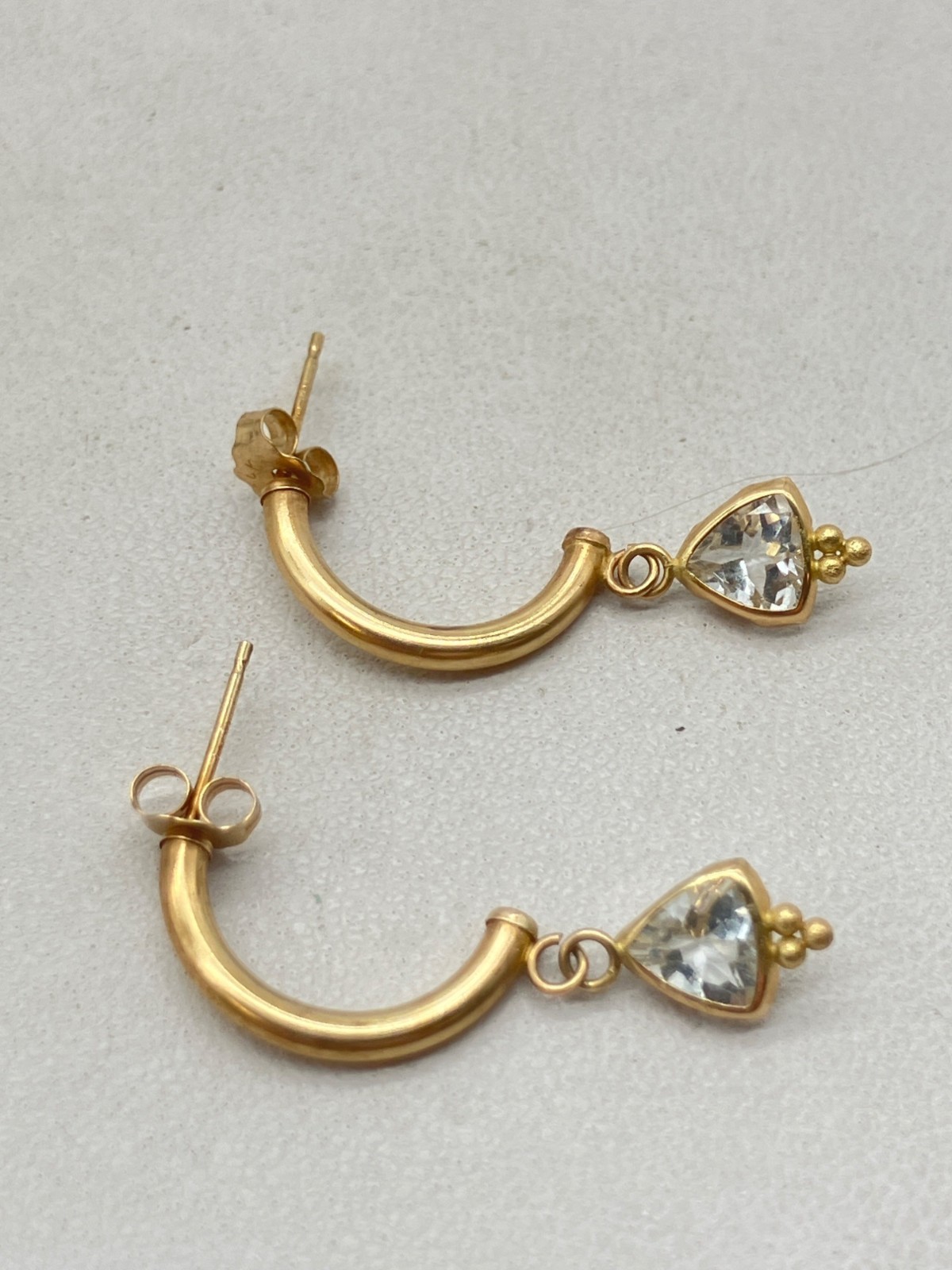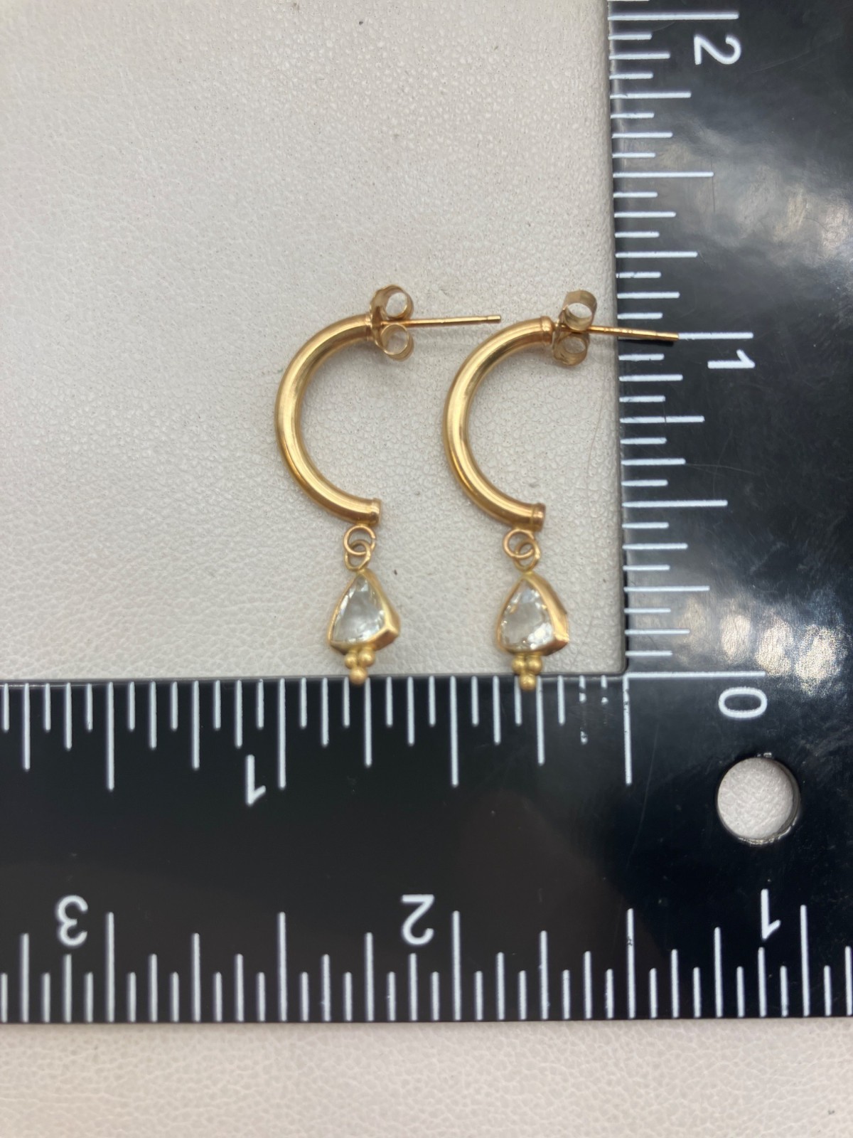 14k Gold CZ Half Hoop Dangle Earrings - 1g