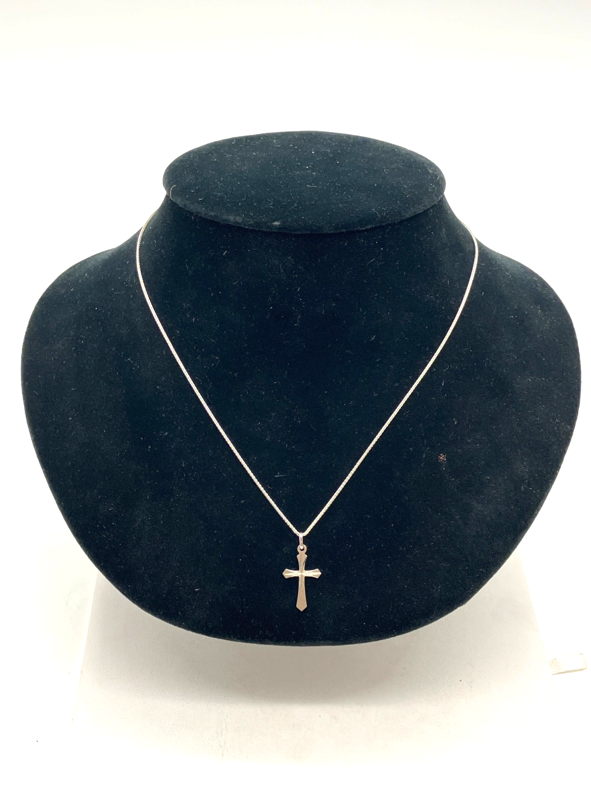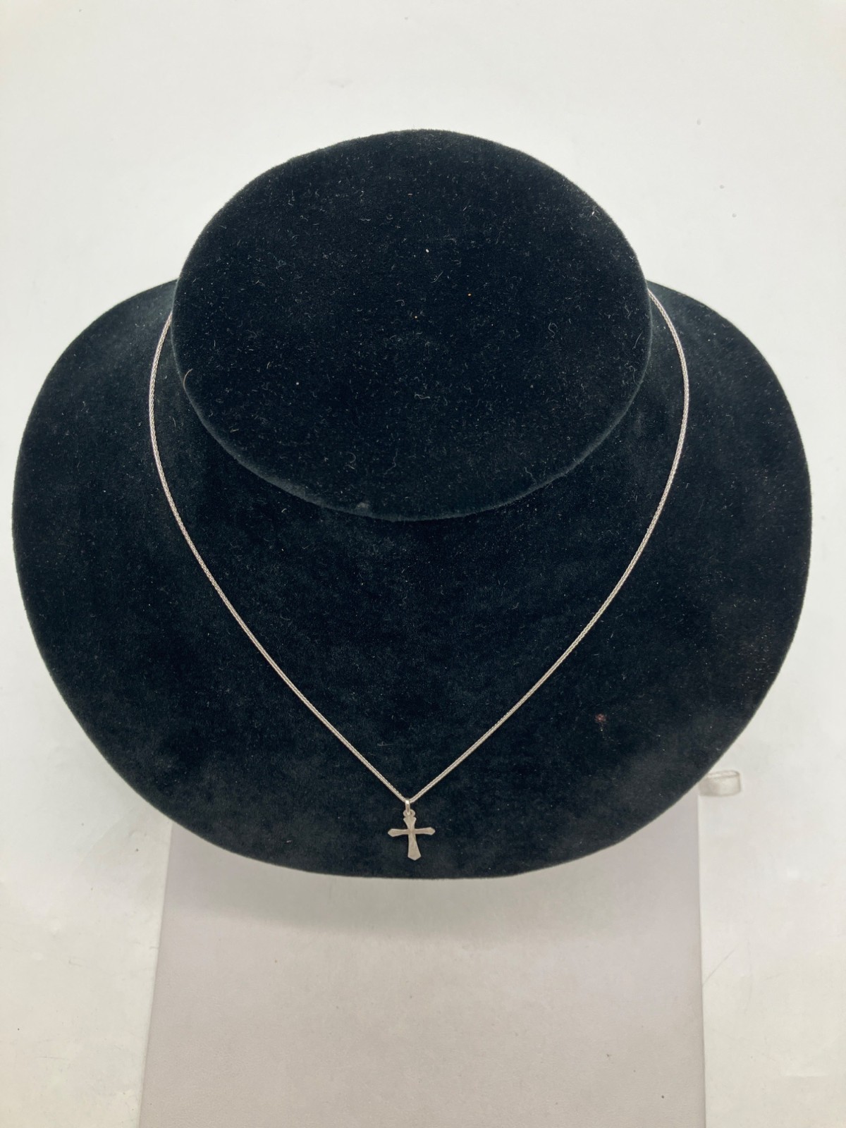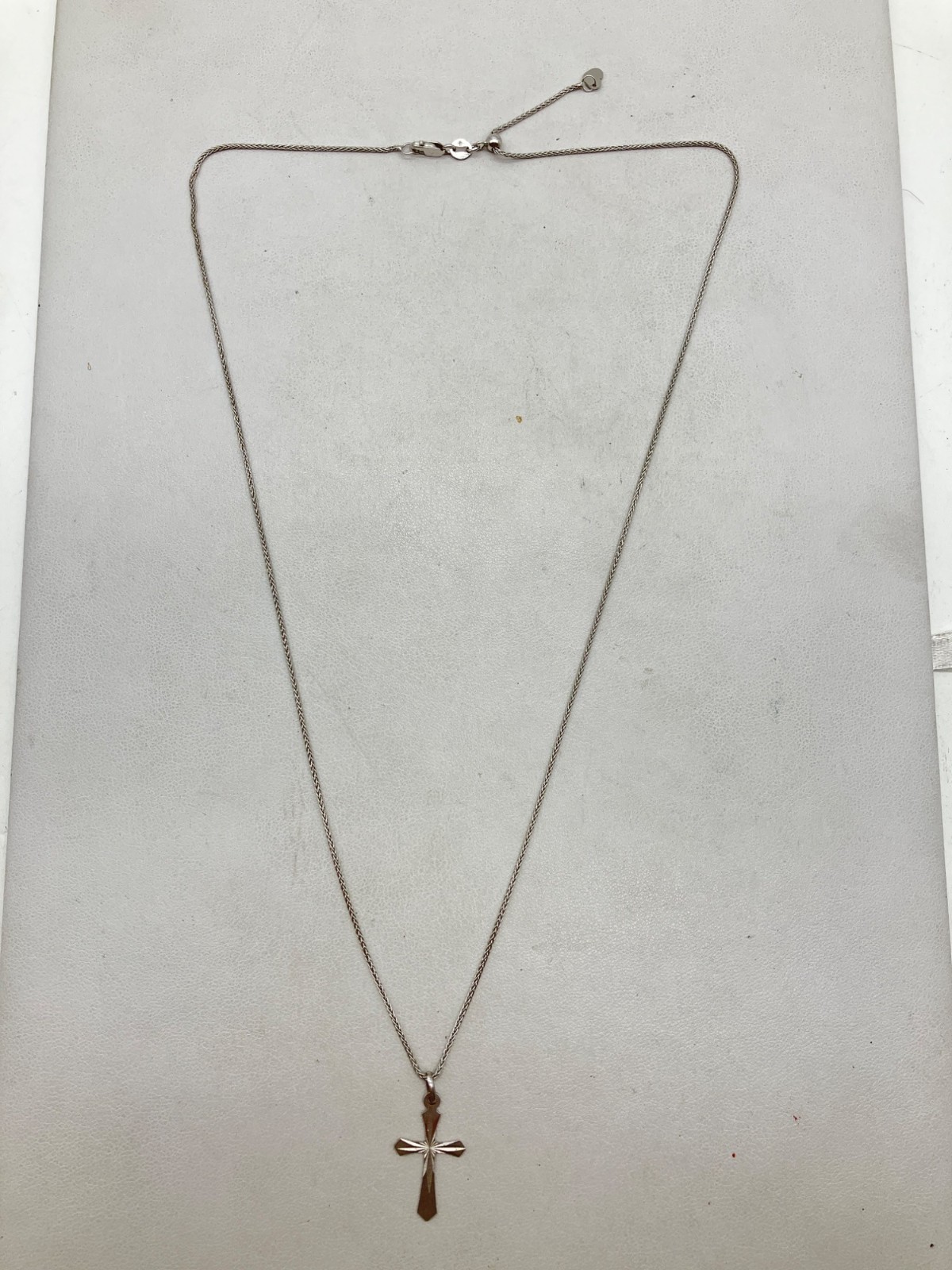 14k White Gold Cross Pendant Necklace - 23in Adjustable - 4.32g