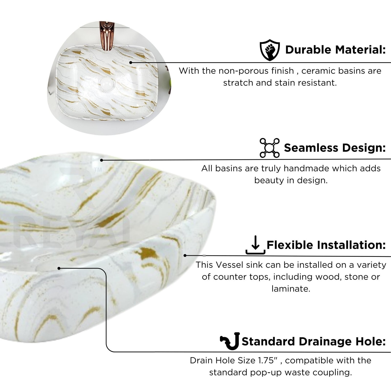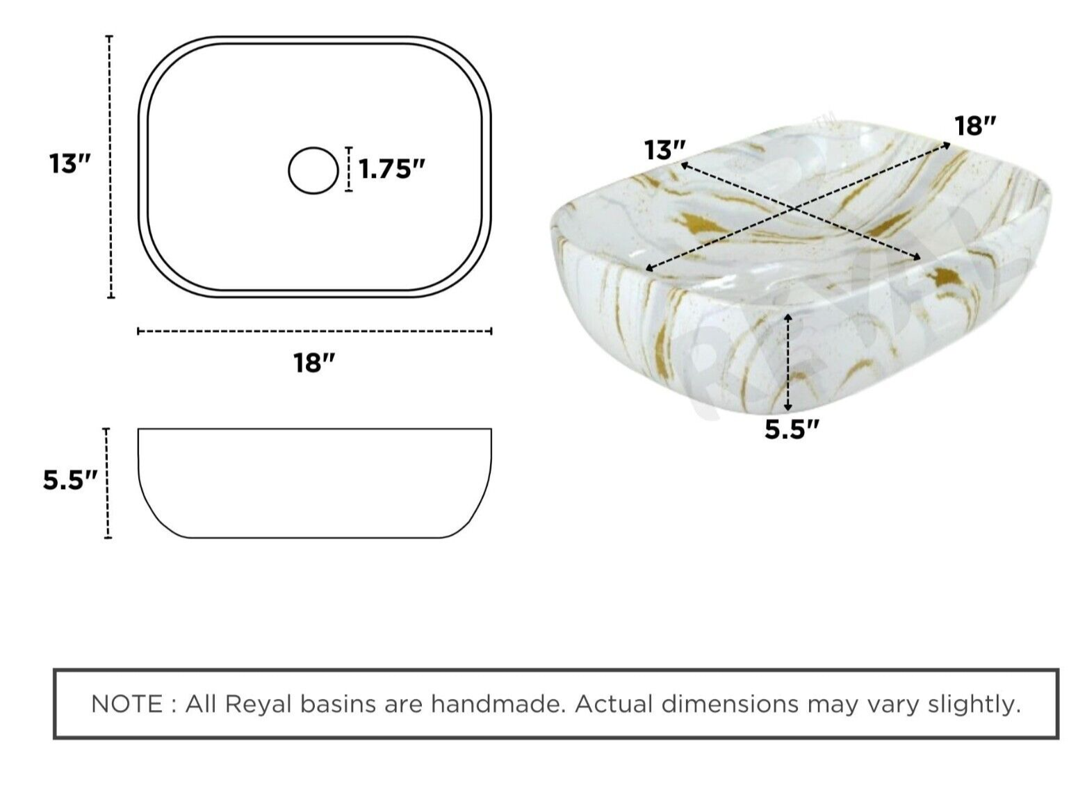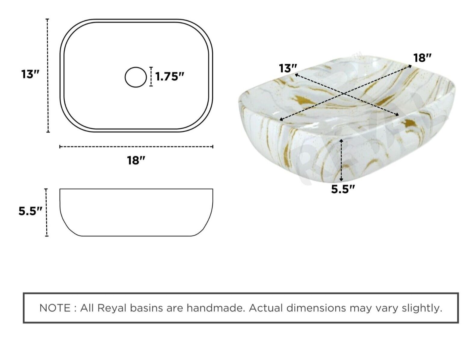 18x13x5.5 Inch Marbre Céramique de Table Lavabo - Blanc Avec Gris Jaune Bracelet