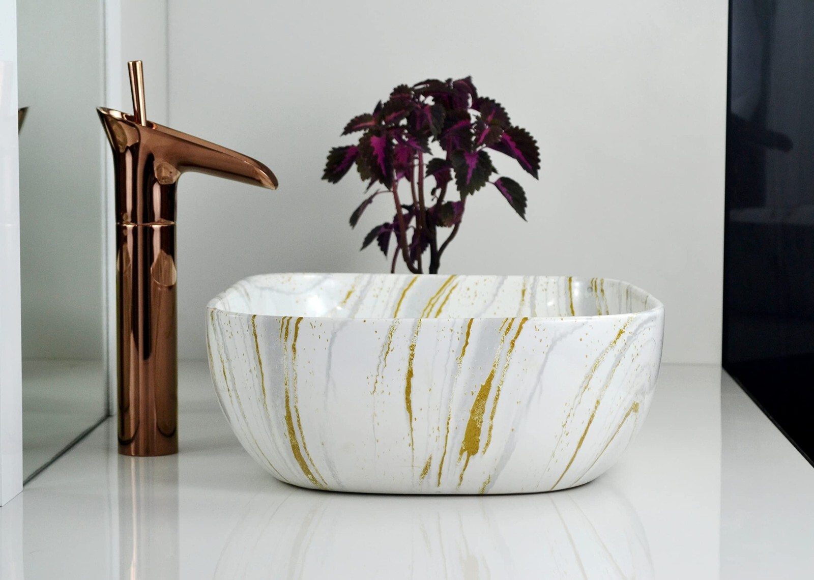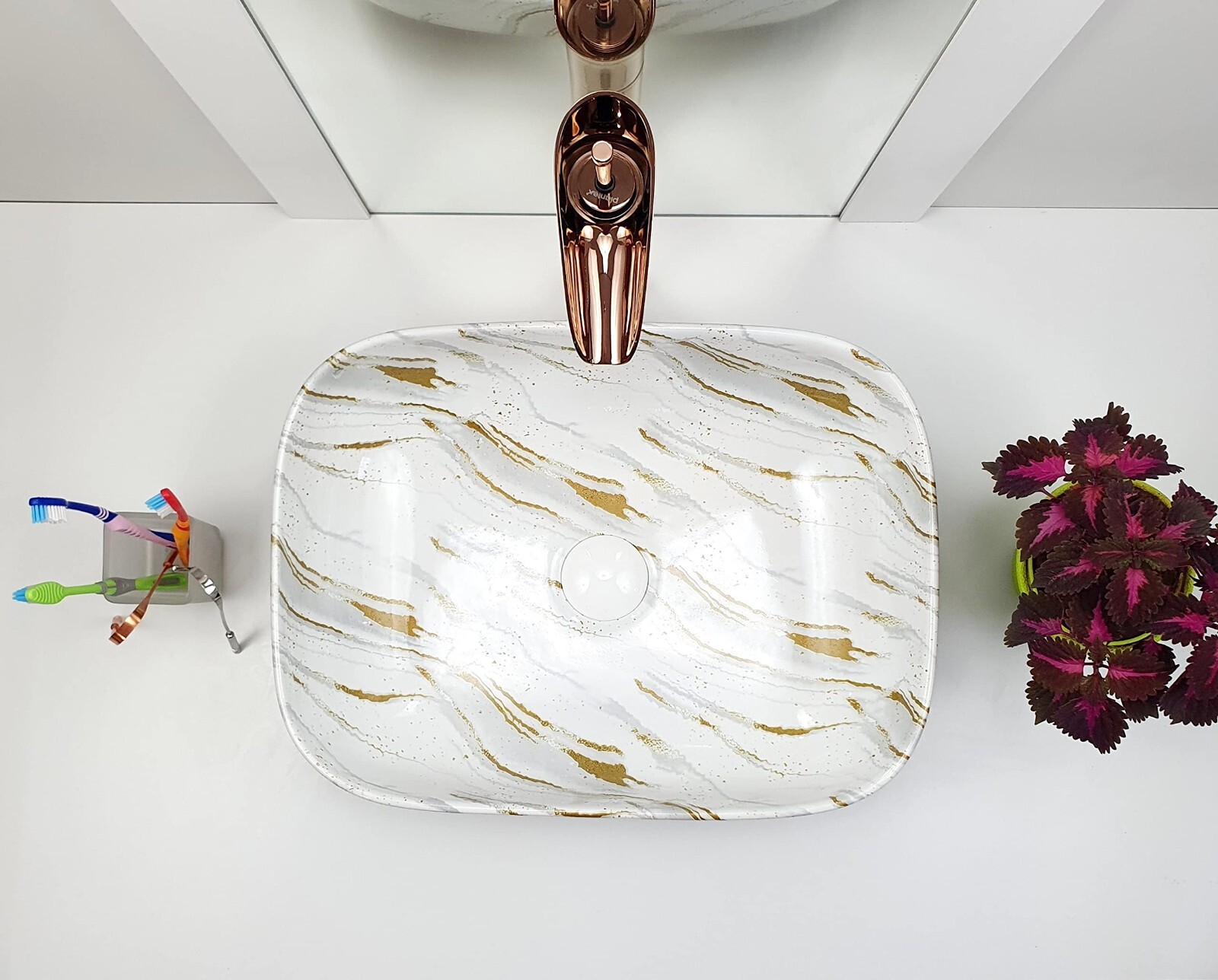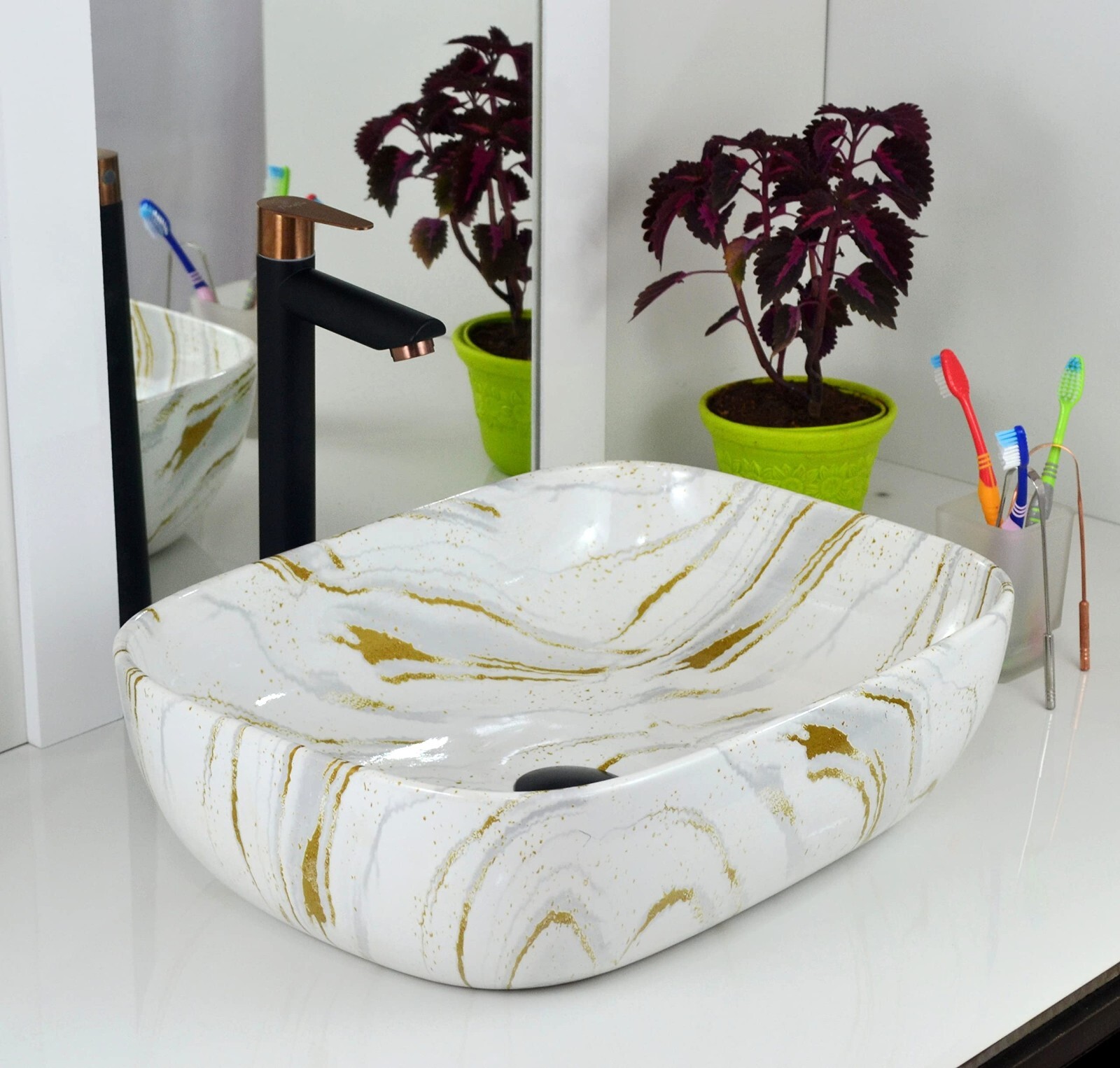 18x13x5.5 Inch Marbre Céramique de Table Lavabo - Blanc Avec Gris Jaune Bracelet