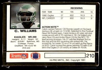 1991 Action Packed Calvin Williams Philadelphia Eagles #210