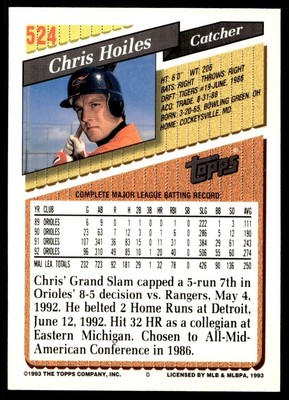 1993 Topps Chris Hoiles Baltimore Orioles #524