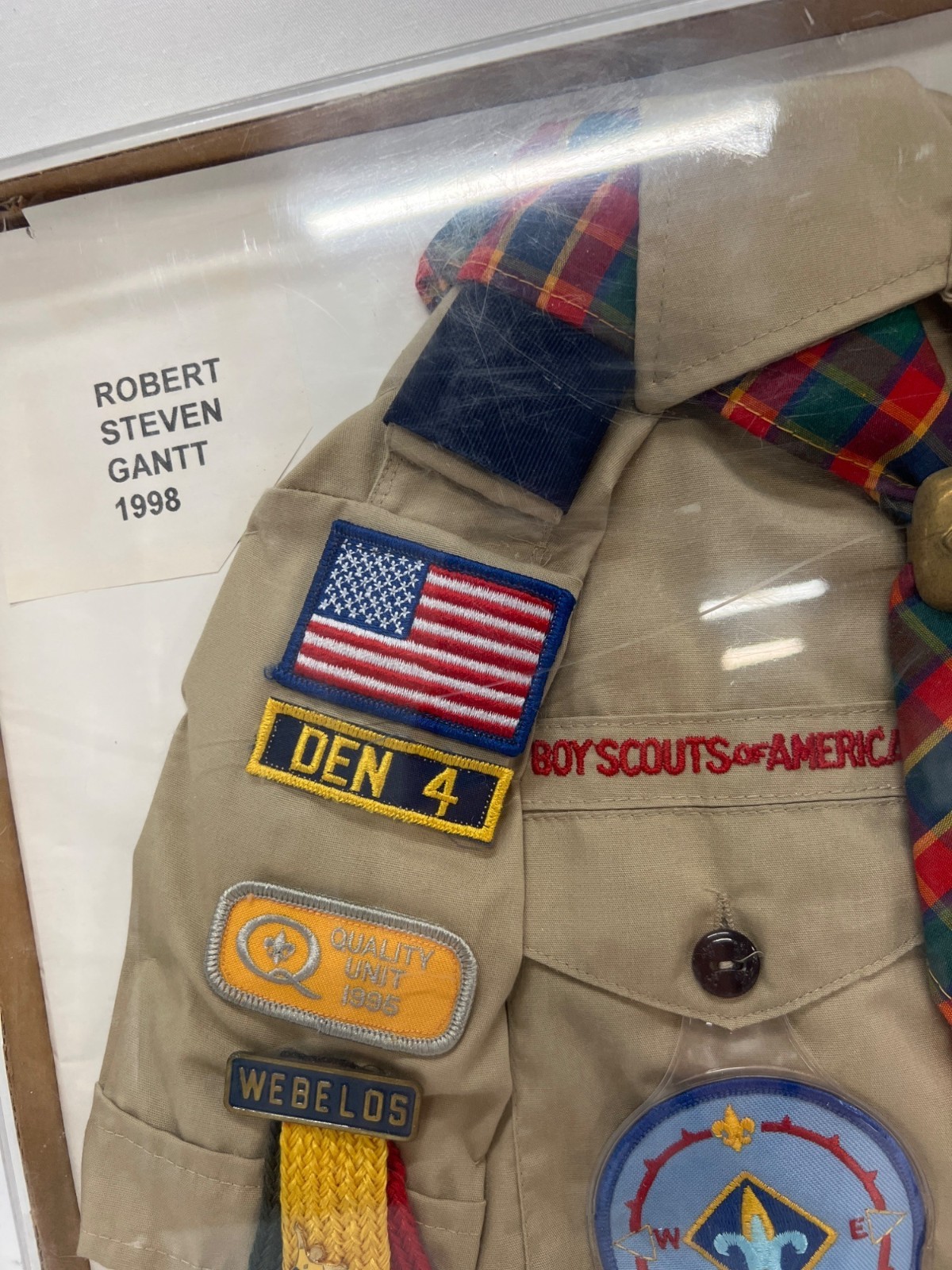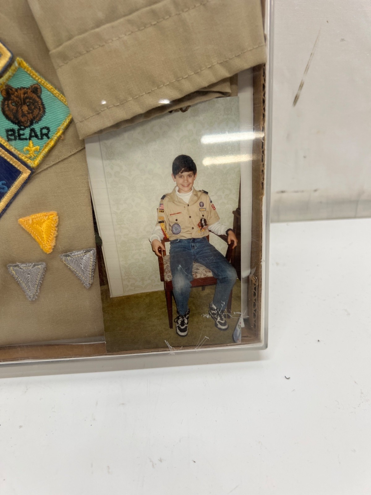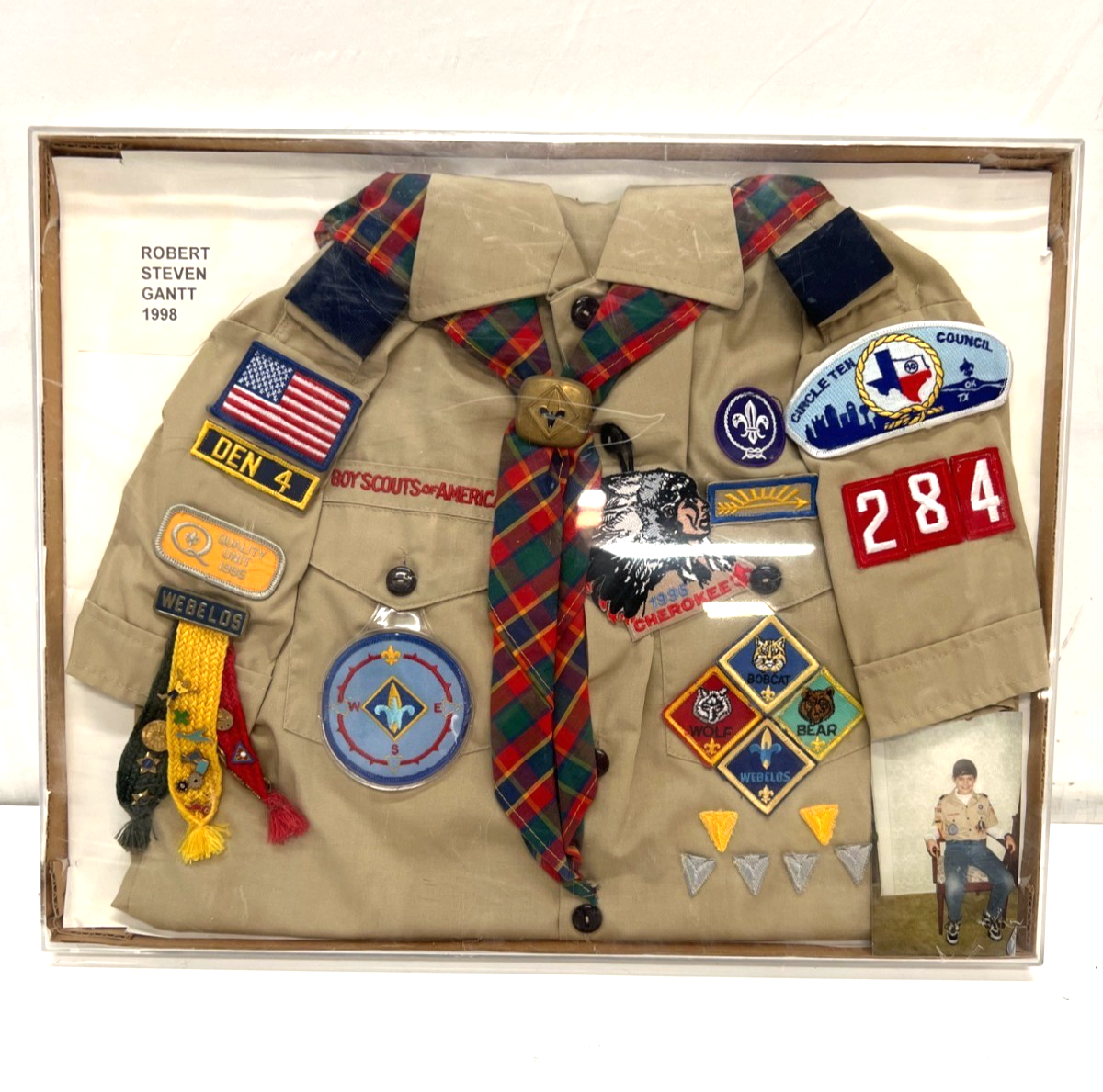 1998 BOY SCOUTS OF AMERICA Uniform Plaque w/ Patches & Pins 20x16"