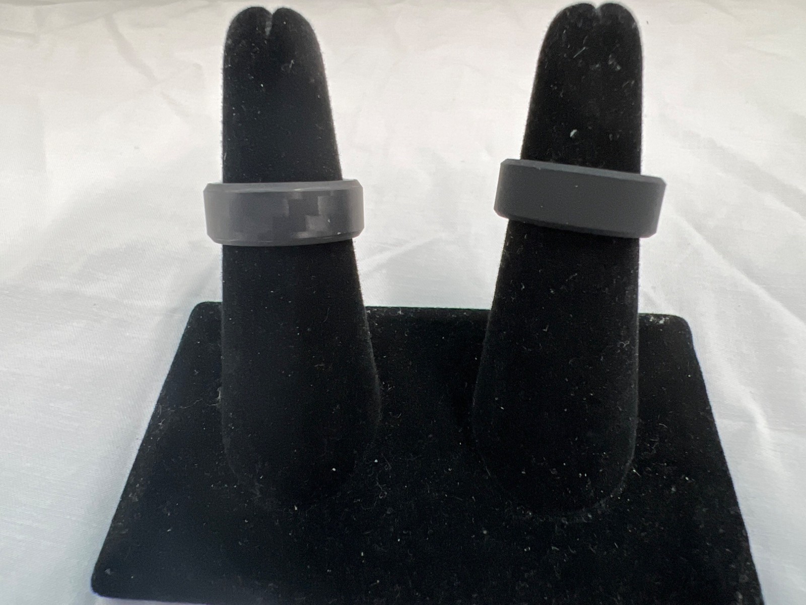 2 Ridge Rings Beveled Carbon Fiber 3k & Black Silicone Size 7.5 Wedding Bands