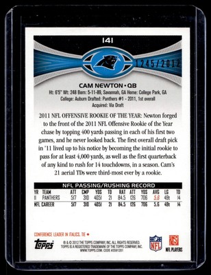 2012 Topps Gold Cam Newton 1245/2012 Carolina Panthers #141
