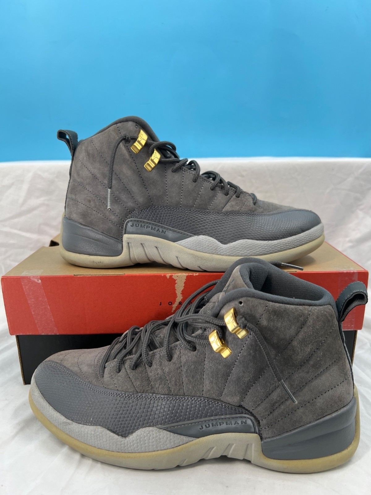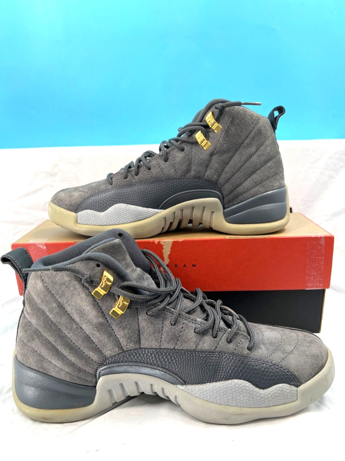 2017 AIR JORDAN 12 Retro Dark Grey Sneakers in box Men's Size 9 (Some Wear)