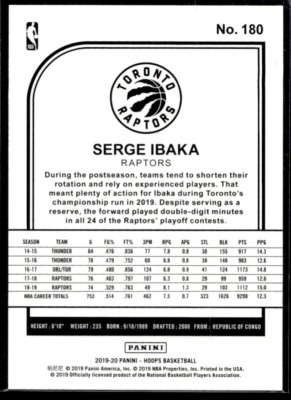 2019-20 Hoops Serge Ibaka Toronto Raptors #180