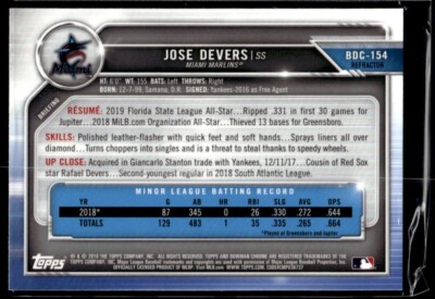 2019 Bowman Draft Chrome Refractor Jose Devers Miami Marlins #BDC-154