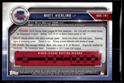 2019 Bowman Draft Chrome Refractor Matt Vierling Philadelphia Phillies #BDC-181