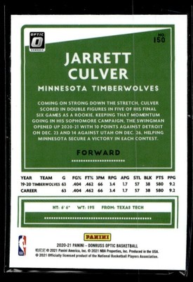 2020-21 Donruss Optic Jarrett Culver Minnesota Timberwolves #150
