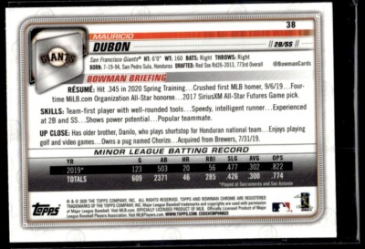 2020 Bowman Chrome Mauricio Dubon RC San Francisco Giants #38