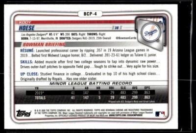 2020 Bowman Chrome Prospects Kody Hoese Los Angeles Dodgers #BCP-4