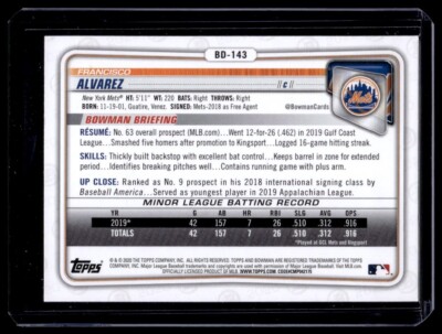 2020 Bowman Draft Francisco Alvarez New York Mets #BD-143