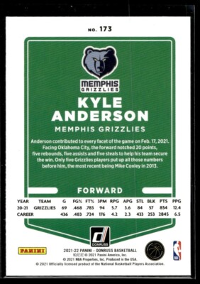 2021-22 Donruss Kyle Anderson Memphis Grizzlies #173