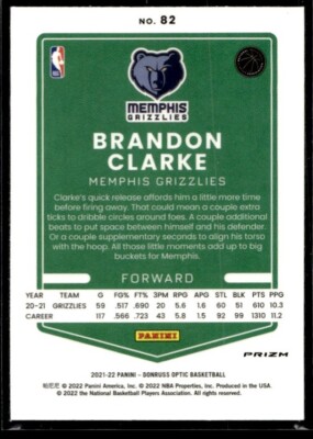 2021-22 Donruss Optic Brandon Clarke Memphis Grizzlies #82 Blue Pulsar/Laser?