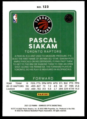 2021-22 Donruss Optic Pascal Siakam Toronto Raptors #123
