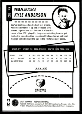 2021-22 Hoops Kyle Anderson Memphis Grizzlies #162