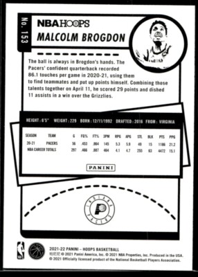 2021-22 Hoops Malcolm Brogdon Indiana Pacers #153