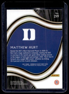 2021-22 Panini Chronicles Draft Picks Select Matthew Hurt Duke Blue Devils #299