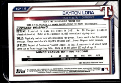 2021 Bowman Chrome Prospects Bayron Lora Texas Rangers #BCP-139