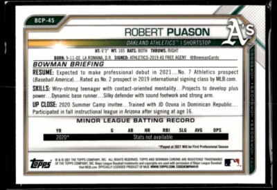 2021 Bowman Chrome Prospects Robert Puason Oakland Athletics #BCP-45