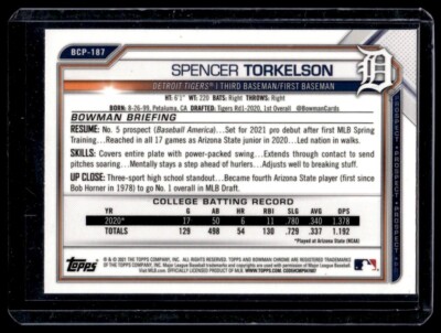 2021 Bowman Chrome Prospects Spencer Torkelson Detroit Tigers #BCP-187