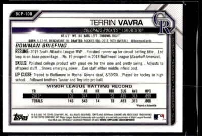 2021 Bowman Chrome Prospects Terrin Vavra Colorado Rockies #BCP-100