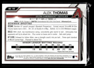 2021 Bowman Draft Alek Thomas Arizona Diamondbacks #BD-105