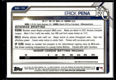 2021 Bowman Draft Chrome Erick Pena Kansas City Royals #BDC-178