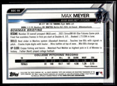 2021 Bowman Draft Chrome Max Meyer Miami Marlins #BDC-99