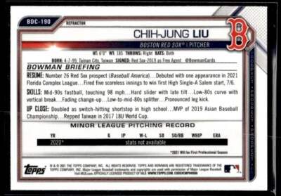 2021 Bowman Draft Chrome Refractor Chih-Jung Liu Boston Red Sox #BDC-190
