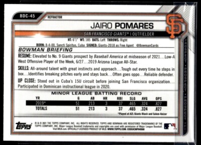 2021 Bowman Draft Chrome Refractor Jairo Pomares San Francisco Giants #BDC-45