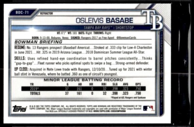 2021 Bowman Draft Chrome Refractor Osleivis Basabe Tampa Bay Rays #BDC-71