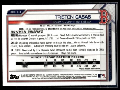 2021 Bowman Draft Chrome Triston Casas Boston Red Sox #BDC-173