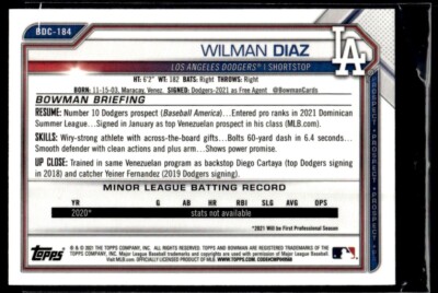 2021 Bowman Draft Chrome Wilman Diaz Los Angeles Dodgers #BDC-184
