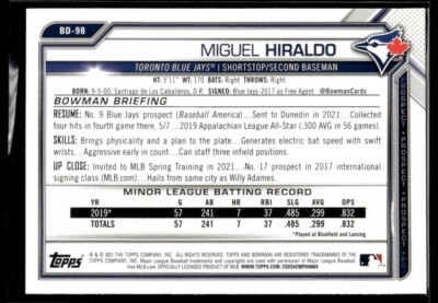 2021 Bowman Draft Miguel Hiraldo Toronto Blue Jays #BD-98