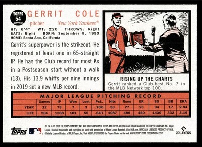 2021 Topps Archives Gerrit Cole New York Yankees #54