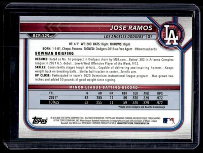 2022 Bowman Prospects Jose Ramos Los Angeles Dodgers #BCP-129