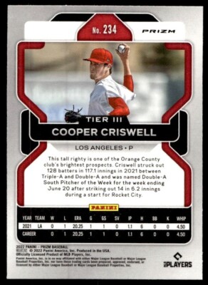 2022 Panini Prizm Red White & Blue Cooper Criswell RC Los Angeles Angels #234
