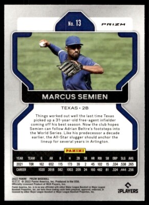 2022 Panini Prizm Red White & Blue Marcus Semien Texas Rangers #13