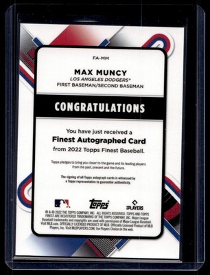 2022 Topps Finest Refractor Blue Refractor Auto Max Muncy Auto 11/150 Los