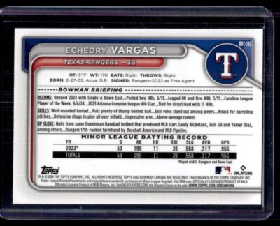 2024 Bowman Draft Chrome Echedry Vargas Texas Rangers #BDC-142