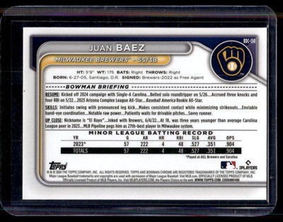 2024 Bowman Draft Chrome Juan Baez Milwaukee Brewers #BDC-150