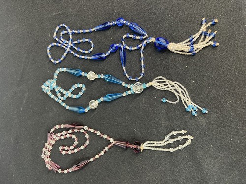 (3) Vintage Beautiful Glass Beaded Tassel Necklace Women’s Blue Purple 30”-36”