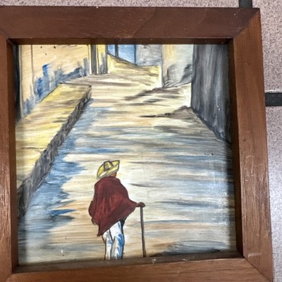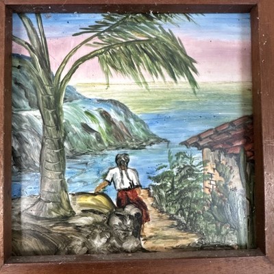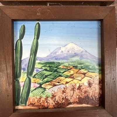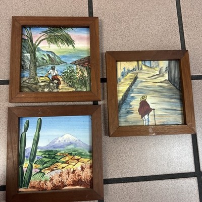 3- vintage hand painted Mexican tiles /framed H & R Johnson , English