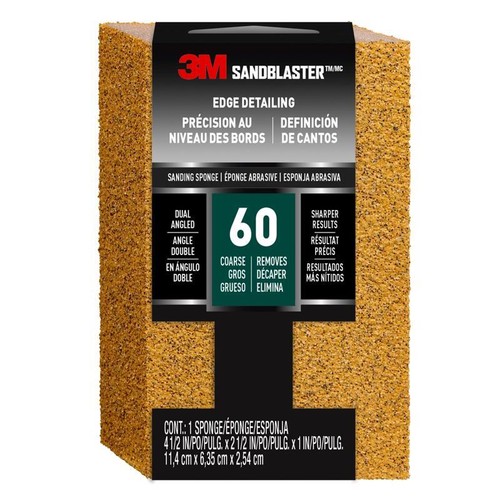 3M 9558 SandBlaster Yellow Medium Sanding Sponge 4-1/2 L x 2-1/2 W x 1 Thick in.
