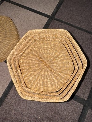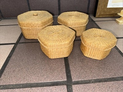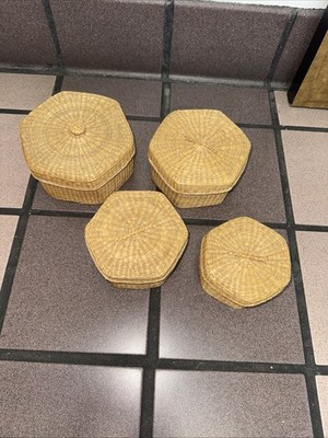 5 pc. set-Nested Graduated Grass Hand Woven Baskets with Tops/Lids/Covers