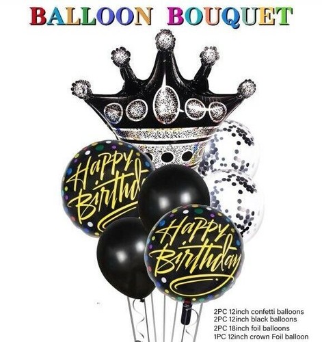 7 Pcs Balloons Bouquet Black Decoration Unisex Adult Happy Birthday Events Party